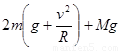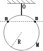 如图所示,有一质量为M的大圆环,半径为R,被一轻杆固定后悬挂在O点,有两个质量为m的小环(可视为质点),同时从大环两侧的对称位置由静止滑下,两小球同时滑到底部时,速度为v,则此时大环对轻杆的拉力大小为( )