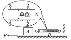 某同学用图所示的装置测量放在粗糙水平桌面上的长金属板B与铁块A间的动摩擦因数。已知A和B,B和桌面间的动摩擦因数相同,铁块A的质量m=1 kg,金属板B的质量m′=0.5 kg,用水平力F向左拉金属板B,使其相对于A向左匀速运动,稳定时弹簧测力计示数如图所示。则弹簧测力计示数为_________