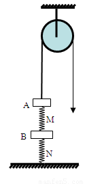 如图所示,木块A、B与弹簧M拴接,弹簧N的上端与木块B拴接。弹簧M、N的