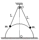 如图所示表面光滑、半径为R的半球固定在水平地面上,球心O的正上方O′处有一无摩擦定滑轮,轻质细绳两端各系一个小球挂在定滑轮上。两小球平衡时,若滑轮两侧细绳的长度分别为L1=2.4R和L2=2.5R,则两个小球的质量之比m1:m2(不计球的大小)为:( )![]()