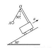 如图所示,质量为0.2 kg的小球A用细绳悬挂于车顶板的O点,当小车在外力作用下沿倾角为30°的斜面向上做匀加速直线运动时,球A的悬线恰好与竖直方向成30°夹角.求:小车沿斜面向上运动的加速度多大?