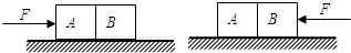 如图所示,置于光滑水平面上的木块A和B,其质量为mA和mB。当水平力F作用于A左端上时,两物体一起作加速运动,其A、B间相互作用力大小为N1;当水平力F作用于B右端上时,两物体一起做加速度运动,其A、B间相互作用力大小为N2。则以下判断中正确的是( )