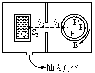我国物理学家葛正权于1934年测定了铋蒸气分子的速率,其实验装置主要部分如图所示,Q是蒸气源,E是一个可绕中心轴(垂直于图平面)转动的空心圆筒,S1、S2、S3是平行的窄缝,整个装置放在真空中,若E不动,分子落在P处;当圆筒以角速度ω转动时,通过狭缝S3的分子落在