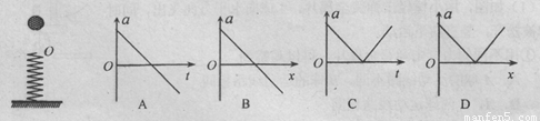 如图所示,一轻弹簧竖直固定在水平地面上,弹簧正上方有一个小球自由下落。从小球 接触弹簧上端O点到将弹簧压缩到最短的过程中,小球的加速度a随时间t或者随距O 点的距离X变化的关系图线是