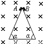 如图,匀强磁场垂直纸面向里,有一足够长的等腰三角形绝缘滑槽,斜槽两侧与水平面夹角为α,在斜槽顶点两侧各放一个质量相等、带等量负电荷的滑块A和B,两滑块与斜槽间的动摩擦因数相等,且μ<tanα,将两滑块同时由静止释放,则![]()