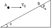 如图所示,从A点以水平速度V0抛出一个小球,空气阻力不计.小球落在倾角为α的斜面上的B点,速度方向与斜面夹角为β,则此时小球的速度大小VB为________,小球在空中的运动时间t为________.