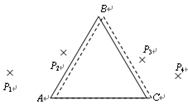 如图所示,某同学为了测量截面为正三角形的三棱镜玻璃折射率,先在白纸上放好三棱镜,在棱镜的左侧插上两枚大头针P1和P2,然后在棱镜的右侧观察到 P1像和P2像,当P1的像恰好被P2像挡住时,插上大头针P3和P4,使P3挡住P1、P2的像,P4挡住P3和P1、P2的像.在纸上标出的大头针位置和三棱镜轮廓如图所示.![]()