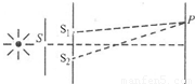 如图是单色光的双缝干涉的示意图,其中S为单缝、 S1、S2为双缝,且三条缝互相平行,缝S到S1、S2的距离相等,下列说法中正确的是:( )