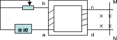 如图所示,当滑动变阻器触头向左移动时,右边导轨上导体棒MN向左移动,则a、b两点和c、d两点电势关系是