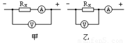 (4分)用伏安法测量电阻,有如图中甲、乙所示的两种电路。现有一待测电阻Rx,不知道大约多大,电压表的内阻也不知道,但知道电流表的内阻为RA,那么测量时应采用图______电路(填“甲”或“乙”)。在所选电路中,若电压表和电流表的示数分别为U和I,(不考虑读表读数误差、接线松紧等技术误差)则待测电阻的真实值Rx=_________。