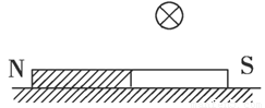 如图3-4-24所示 ,一条形磁铁放在水平桌面上,在磁铁右上方固定一根与磁铁垂直的长直导线.当导线中通以由外向内的电流时( )