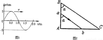 (2)(5分)如图所示为一个向右传播的t =0时刻的横波波形图,已知波从O点传到D点用0.2 s,该波的波速为 m/s,频率为 Hz;t =0时,图中“A、B、C、D、E、F、G、H、I、J”各质点中,向y轴正方向运动的速率最大的质点是 .