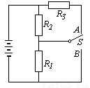 如图所示的电路中,电源由4个相同的干电池串联而成,每个电池的电动势为1.5V,内电阻为0.5Ω,外电路电阻R1=2Ω,R2=R3=4Ω。试求: