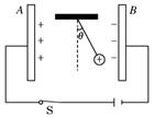 平行板电容器的两极板A、B接于电源两极,两极板竖直、平行正对,一带正电小球悬挂在电容器内部,闭合电键S,电容器充电,悬线偏离竖直方向的夹角为θ,如图所示,则下列说法正确的是 ( )