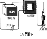 12.汽车消耗的主要燃料是柴油和汽油.柴油机是靠压缩汽缸内的空气点火的,而汽油机做功冲程开始时.汽缸中的汽油-空气混合气是靠火花塞点燃的.但是汽车蓄电池的电压只有12V.不能在火花塞中产生火花.因此.要使用如图所示的点火装置.此装置的核心是一个变压器.该变压器初级线圈通过开关连到蓄电池上.次级线圈接到火花塞的两端.开关由机械控制.做功冲程开始时.开关由闭合变为断开.从而在次级线圈中产生10000V以上的电压.这样就能在火花塞中产生火花了.下列说法正确的是 ( ) (A) 柴油机的压缩点火过程是通过做功使 空气的内能增大的 (B) 汽油机点火装置的开关若始终闭合.次 级线圈的两端也会有高压 (C)接该变压器的初级线圈的电源必须是交流电源.否则就不能在次级产生高压 (D) 汽油机的点火装置中变压器的次级线圈匝数必须远大于初级线圈的匝数 查看更多