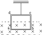 如图所示,正方形线框 abcd 的总电阻为0.04Ω,质量为  6.4g,边长为0.4m,用绝缘丝线竖直悬挂,其 ab 边水平.图中两虚线之间是垂直于线框平面向里的匀强磁场,磁场上边界正好通过ac和bd的中点.磁感应强度从0.2T开始以0.1T/s的变化率均匀增大. 问:
