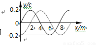 一列横波在x轴上传播着,在t1=0和t2=0.01s时的波形分别如图14中的实线和虚线所示,则(1)由图中读出波的振幅和波长![]()