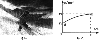 如图甲所示,滑雪运动员由斜坡高速向下滑行时其v―t图象如图乙所示,则由图象中AB段曲线可知,运动员在此过程中: