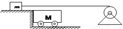 如图所示,质量为M的小车静止在光滑的水平地面上,质量为m的小滑块在电动机的牵引下,以恒定的速度向前运动。现让小滑块滑到小车上,经过一段时间后,m与M处于相对静止。设整个牵引过程中小滑块的速度始终保持为v不变,它与小车之间的动摩擦因素为μ。求(1从小滑块滑到小车上开始到与小车相对静止这段时间里,小车的位移是多少?(2)电动机的牵引力做的功是多少?