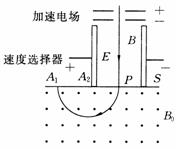 右图是质谱仪的工作原理示意图。带电粒子被加速电场加速后,进入速度选择器。速度选择器内相互正交的匀强磁场和匀强电场的强度分别为B和E,平板S上有可让粒子通过的狭缝P和记录粒子位置的胶片A1A2。平板S下方有强度为B0的匀强磁场。下列表述正确的是( )