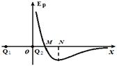 两个点电荷Q1、Q2固定于x轴上。将一带正电的试探电荷从足够远处沿x轴负方向移近Q2(位于座标原点O)。过程中,试探电荷的电势能Ep随位置变化的关系如图所示。则下列判断正确的是( )![]()