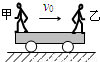 如图所示,光滑水平面上有一辆质量为2m的小车,车上左右两端分别站着甲、乙两人,他们的质量都是m,开始两个人和车一起以速度v0向右匀速运动.某一时刻,站在车右端的乙先以相对于地面向右的速度u跳离小车,然后站在车左端的甲以相对于地面向左的速度u跳离小车.两人都离开小车后,小车的速度将是 ( )