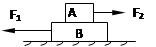 如图所示,在水平面上叠放着两个物体A和B,两物体在F1,F2 (F1>F2)的水平拉力作用下,处于静止状态。试分别画出A物体、B物体和整体的受力图.![]()