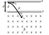 如图所示,水平放置的两块长直平行金属板a、b相距d =0.10m,a、b间的电场强度为E =3.0×103 N/C,b板下方整个空间存在着磁感应强度大小为B =0.3T、方向垂直纸面向里的匀强磁场.今有一质量为m =2.4×10-13 kg、电荷量为q =4.0×10-8 C的带正电的粒子(不计重力),从贴近a板的左端以v0 =1.0×104 m/s的初速度从A点水平射入匀强电场,刚好从狭缝P处穿过b板而垂直进入匀强磁场,最后粒子回到b板的Q处(图中未画出).