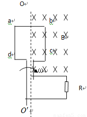 如图所示,边长为L的正方形线圈abcd,其匝数为n,总电阻为r,外电路的电阻为R,ab的中点和cd的中点的连线OO 恰好位于匀强磁场的边界线上,磁场的磁感应强度为B,若线圈从图示位置开始,以角速度
