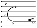 如图所示,在E = 103V/m的水平向左匀强电场中,有一光滑半圆形绝缘轨道竖直放置,轨道与一水平绝缘轨道MN连接,半圆轨道所在竖直平面与电场线平行,其半径R =0.4m,一带正电荷q = 10-4C的小滑块质量为m = 0.04kg,小滑块与水平轨道间的动摩因数m = 0.2,g取10m/s2,求: