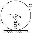 如图所示,一质量m 的塑料球形容器放在桌面上,它的内部有一劲度系数为k的轻弹簧,弹簧直立地固定于容器内壁的底部,弹簧上端经绝缘物系住一只带正电q、质量也为的m小球.从加一个向上的匀强电场E起,到容器对桌面压力减为零时为止.求: