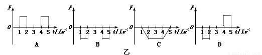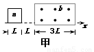 图甲中的a是一个边长为L的正方形导线框,其电阻为R。线框以恒定速度v沿x轴的正方向运动,并穿过图中所示的匀强磁场区域b。如果以x轴的正方向作为力的正方向。线框在图示位置的时刻作为时间的零点,则磁场对线框的作用力F随时间变化的图线应为图乙中的哪个图?