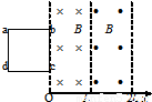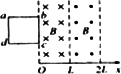 如图,一有界区域内,存在着磁感应强度大小均为B,方向分别垂直于光滑水平桌面向下和向上的匀强磁场,磁场宽度均为L,边长为L的正方形线框abcd的bc边紧靠磁场边缘置于桌面上,使线框从静止开始沿x轴正方向匀加速通过磁场区域,若以逆时针方向为电流的正方向,能反映线框中感应电流变化规律的是图