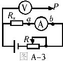如图A-3所示,伏安法测电阻时,为提高测量的精确度,可在连接电路时,将电压表的一端P预留出来,使P分别跟a、b两点接触一下,同时注意观察电流表、电压表的示数,则下面的决定正确的是()