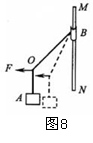 为m的物体A上,另一端与套在粗糙竖直杆MN的轻圆环B相连接。用水平力F拉住绳子上一点O,使物体A及环B静止在图中虚线所示的位置。现稍微增加力F使O点缓慢地移到实线所示的位置,这一过程中圆环B仍保持在原来位置不动。则此过程中,环对杆的摩擦力F1和环对杆的弹力F2的变化情况是