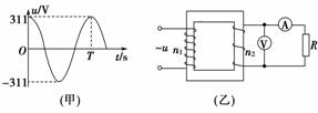 如图(乙)所示,理想变压器原线圈匝数n1=440,副线圈匝数n2=22,在原线圈的两端加如图(甲)所示的交流电压,求: