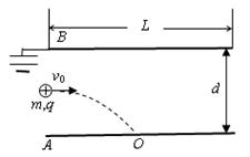 如图所示,水平放置的平行板电容器,原来AB两板不带电,B极板接地,它的极板长L=0.1m,两板间距离d = 0.4 cm,现有一微粒质量m=2.0×10-6kg,带电量q=+1.0×10-8C,以一定初速度从两板中央平行于极板射入,由于重力作用微粒恰好能落到A板上中点O处,取g=10m/s2.试求: