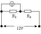 如图,两个定值电阻R1、R2串联后接在输出电压稳定于12V的直流电源上,有人把一个内阻不是远大于R1、R2的电压表接在R1两端,电压表的示数为8V,如果他把此电压表改接在R2两端,则电压表的示数将( )