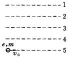 .1、2、3、4、5是电场为E的匀强电场中的5个等势面,相邻两个等势面间的电压均为U,其中1的电势最高,5的电势最低,有一质量为m、质量为e的电子以速度v0沿等势面5进入电场中,则电子到达等势面1的时间t= ,动能Ek= 。