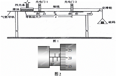⑤从数字计时器(图1中未画出)上分别读出挡光条通过光电门1和光电门2所用的时间