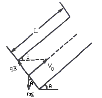 板长为L的平行金属板与水平面成θ角放置,板间有匀强电场,一个带电荷量为q、质量为m的液滴,以速度v0垂直于电场方向射入两板间,如下图所示,射入后液滴沿直线运动,两极板间的电场强度E=________,液滴离开电场时的速度为________.