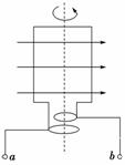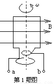 如图所示,一个匝数为10的矩形线圈在匀强磁场中绕垂直于磁场的轴匀速转动,周期为T.若把万用电表的选择开关拨到交流电压挡,测得a、b两点间的电压为20 V,则可知:从中性面开始计时,当t=T/8时,穿过线圈的磁通量的变化率约为