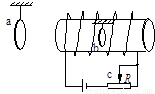 如图所示,通电螺线管左侧和内部分别静止吊一环a和b,当变阻器R的滑动头c向左滑动时( )![]()