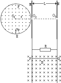 3在同一水平直线上,与平行金属板相接的是两条竖直放置间距为L的足够长的光滑金属导轨,导体棒PQ与导轨接触良好,与阻值为R的电阻形成闭合回路.(导轨与导体棒的电阻不计),该回路处在磁感应强度大小为B,方向垂直纸面向里的匀强磁场中,整个装置处在真空室中,有一束电荷量为+q、质量为m的粒子流(重力不计),以速率V