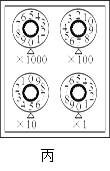(4)在实验中当电阻箱调到丙图所示位置后,闭合开关S,电压表示数为9.0V,变阻箱此时电阻为 Ω,电路中流过电阻箱的电流为 mA。