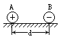如下图所示,在光滑的水平面上放着A、B两个带电绝缘小球,A带正电,B带负电,带电量都是q.它们之间的距离为d.在水平方向加一个匀强电场,使两小球在电场力的作用下都处于静止状态.在AB连线的中点处场强大小是________,方向是________.