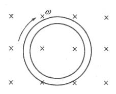 如图所示,一质量均匀分布的细圆环,其半径为R,质量为m,令其均匀带正电,总电量为Q。现将此环平放在绝缘的光滑水平桌面上,并处于磁感强度为B的匀强磁场中,磁场方向竖直向下。当此环绕通过其圆心的竖直轴以匀角速度旋转时,环中的张力等于多少?