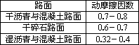 资料二:各种路面与轮胎之间的动摩擦因数: