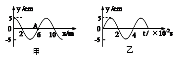 (16分)如图甲是某简谐横波在t=0时刻的图像,如图乙是A点的振动图像,试求: