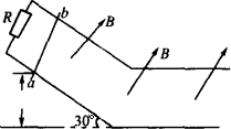 如图所示,在磁感应强度B=0.2 T,方向垂直斜面的匀强磁场中,有间距L=0.2 m的光滑平行导轨.导轨有倾斜和水平两部分,倾斜部分与水平面的夹角θ=30°,导体棒ab质量m=0.02 kg,电阻r=0.02 Ω,放在导轨上,运动中与导轨有良好接触,并且垂直于导轨,电阻R=0.08 Ω,其余电阻不计,当导体棒从h=5 m处由静止释放沿导轨下滑,到达水平导轨前,回路电流已达最大值.取g=10 m/s2,求: